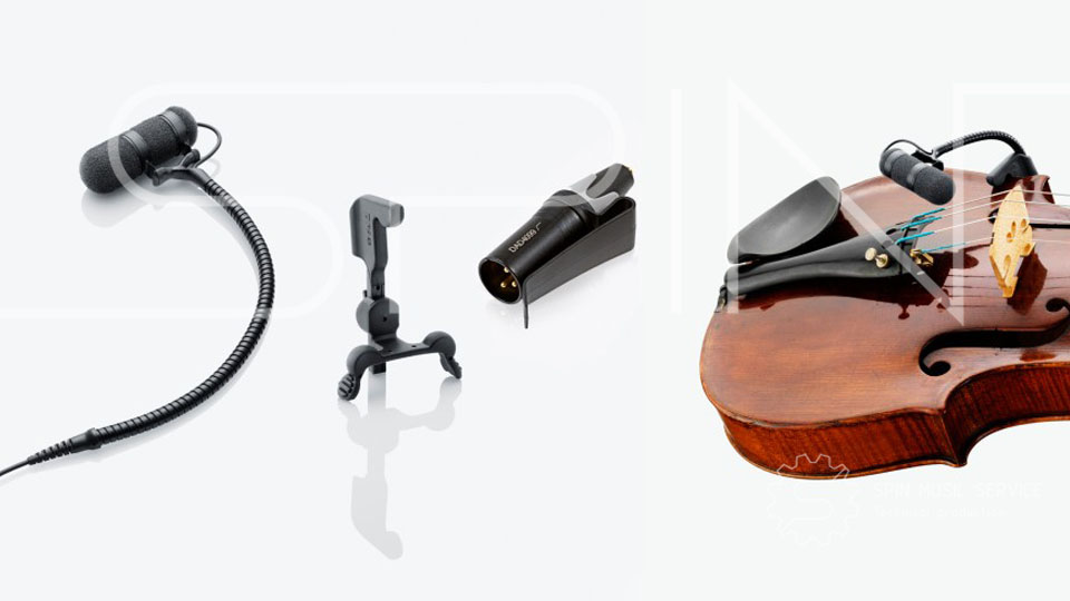 The DPA 4099V is a clip microphone for violin. It is referred to at Spin Music Service company as DPA 4099V (4099 microphone + clip for violin). The 4099 Violin is a miniature condenser supercardioid microphone: violinists and viola players, undoubtedly, will make much of careful fixing of this microphone to this fragile tool. Thus the refined, easy and hardly noticeable microphone will not interfere with your performance even at the most emotional rendition.